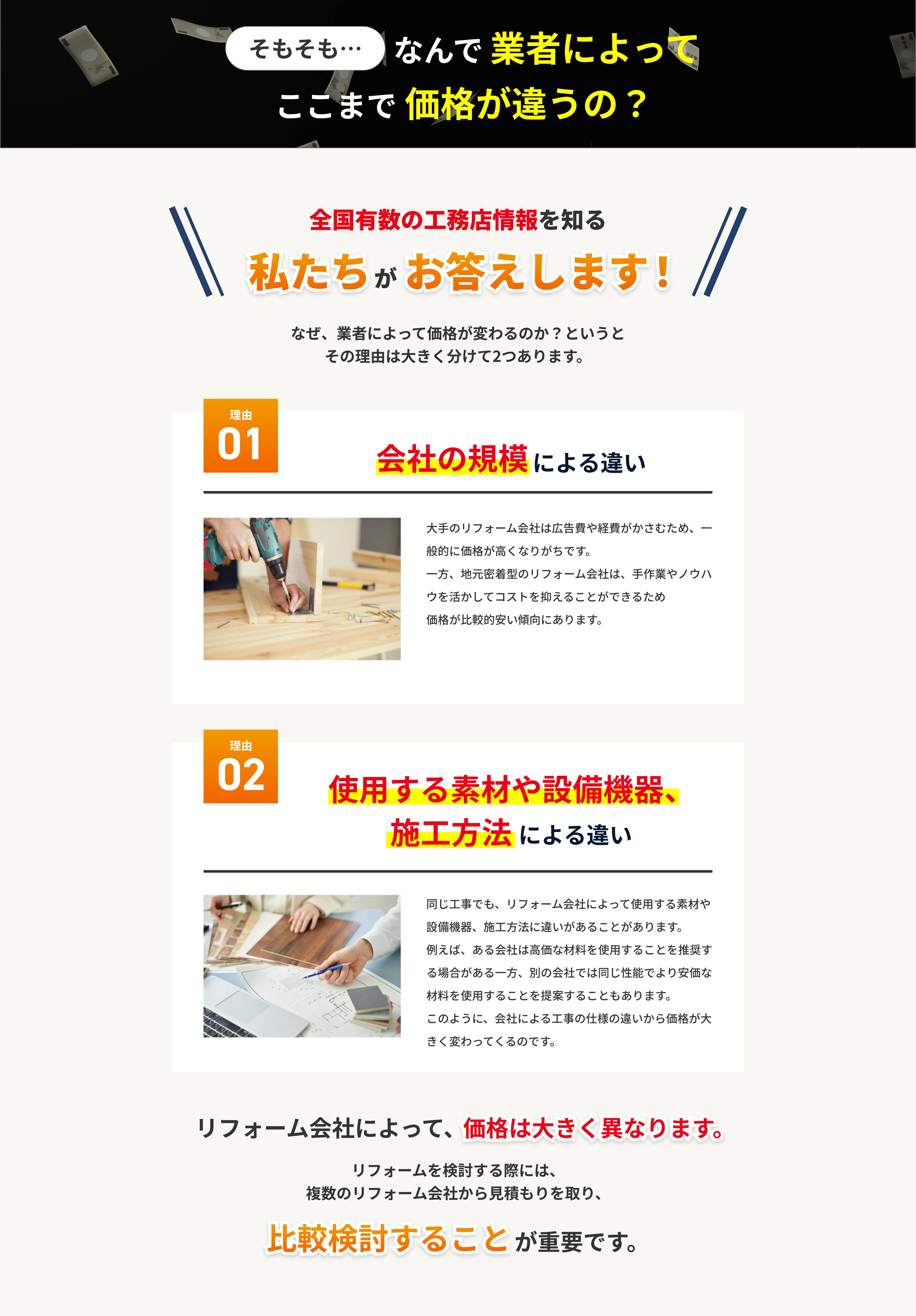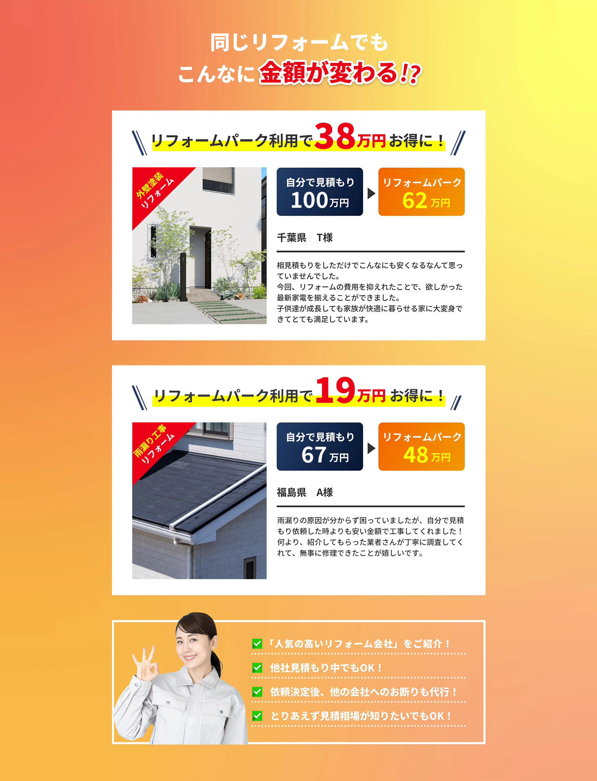 リフォームパークを利用するとリフォームの工事金額が高くならないか?